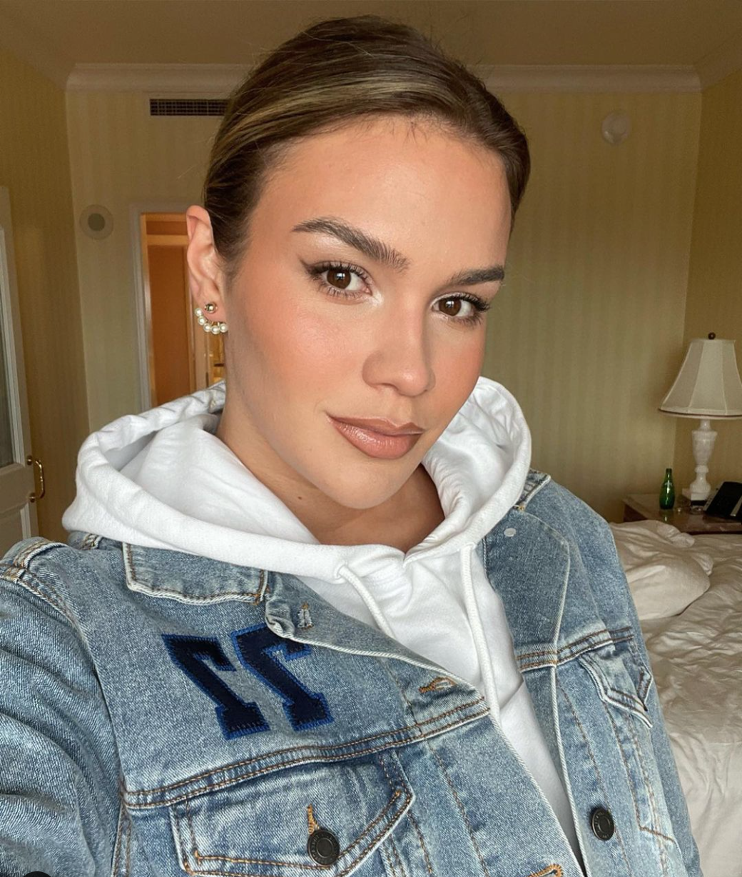 In the photo, Anamaria wears a jean jacket over a white hoodie. The jacket has a sharp "77" stitched on — which, of course, is her boyfriend Luka Dončić's jersey number with the Dallas Mavericks.