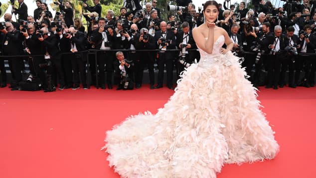 One of the most gorgeous is Indian actress Pooja Hegde! Walking the red carpet in a blush feathered gown!