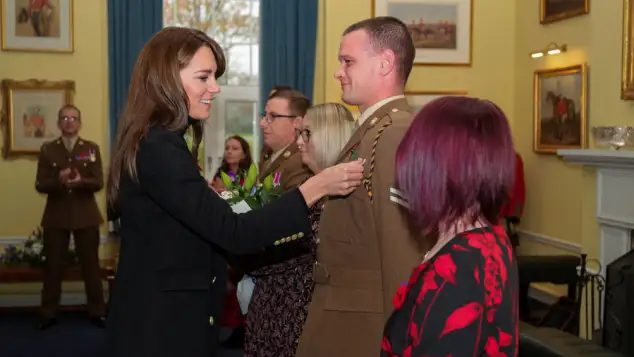 The QDG, formed in 1959, is renowned for its skills in reconnaissance. Princess Kate, donning a camouflage coat and helmet, rode in an armored vehicle and even tried her hand at flying a drone! The Princess also adorned her camo outfit with a red poppy pin, a symbol commemorating military members who have died in war.